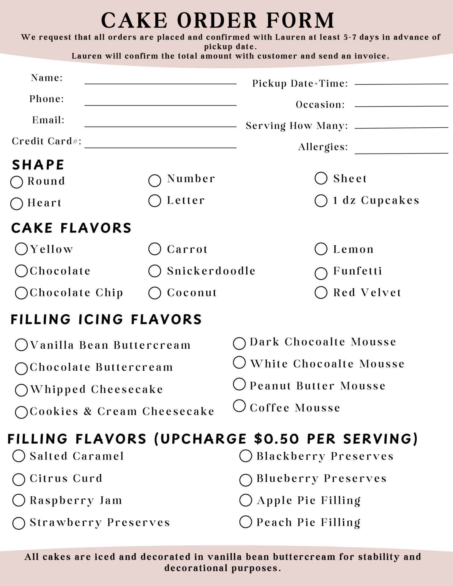 Cake Order Form Cake orders must be placed at least 5 days in advance. Call (609) 927 – 6134 to place order or email completed form to lrenzulli@linwoodcountryclub.com View More Info